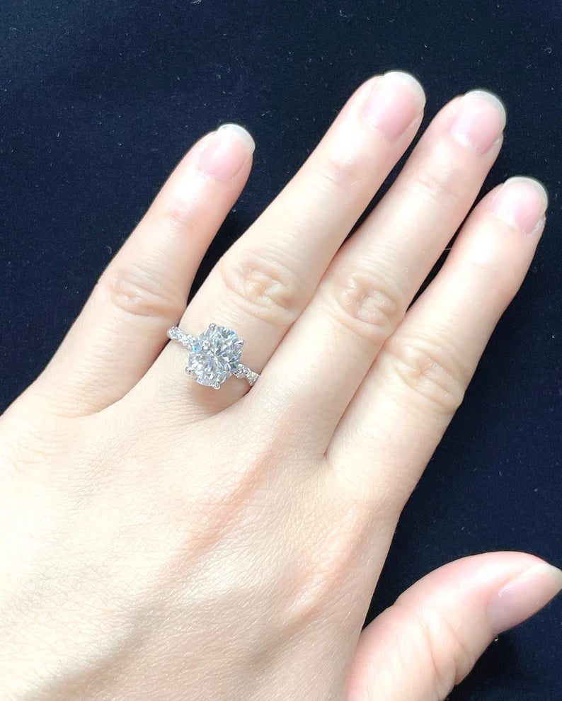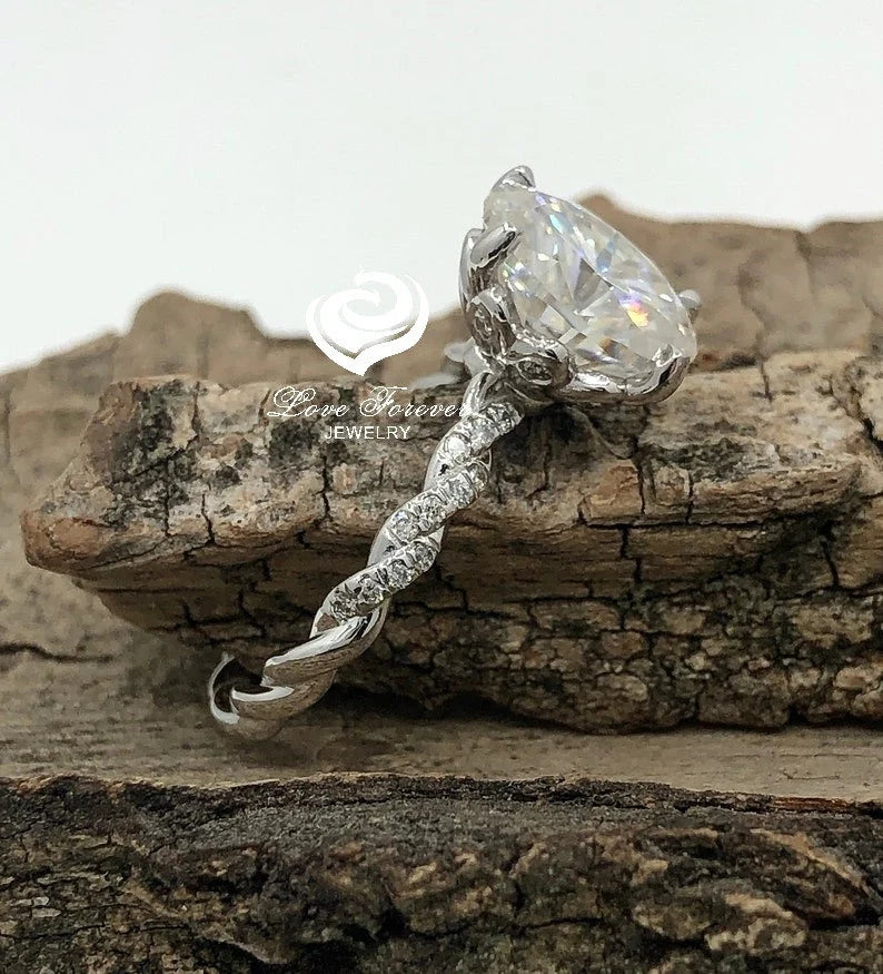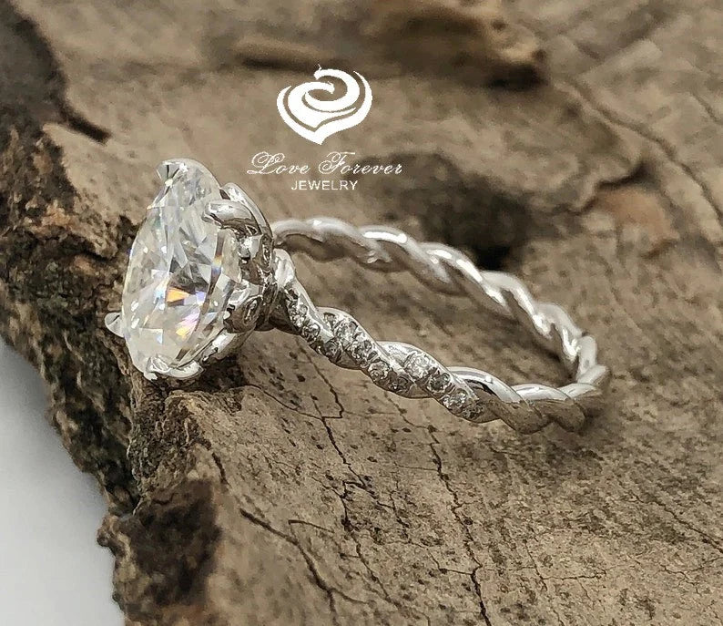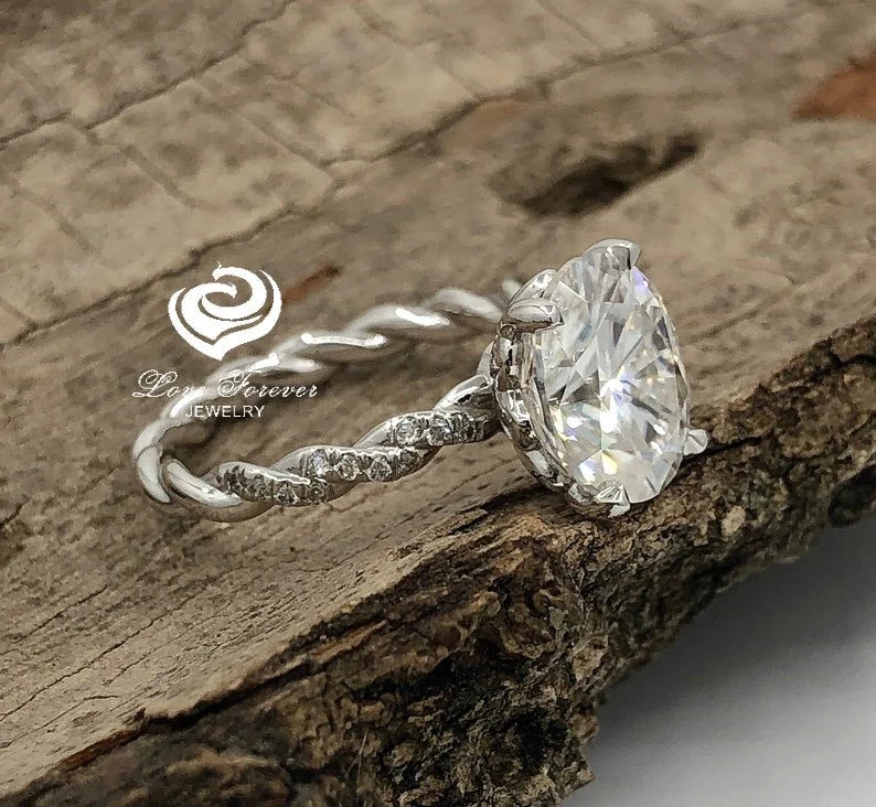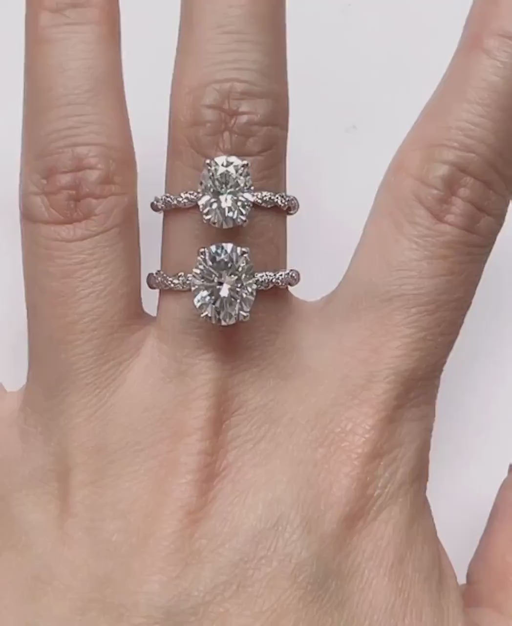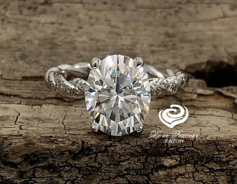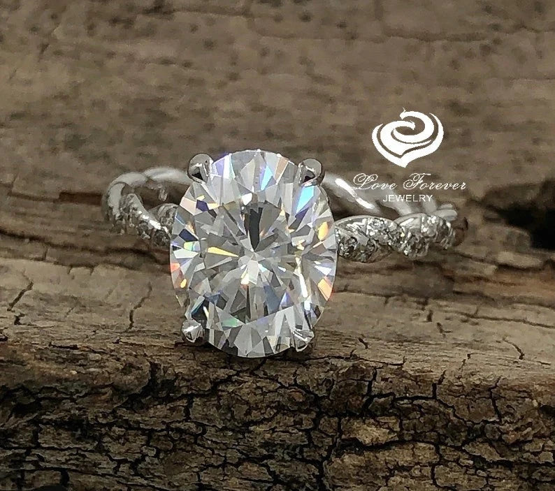 2ct or 3ct Forever One Moissanite Engagement Ring, 14k White Gold Certified 9x7mm/10x8mm Oval Cut D-F Color Moissanite Engagement Ring
