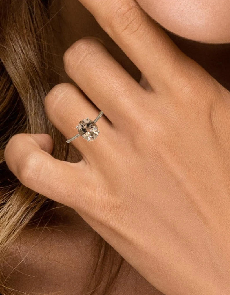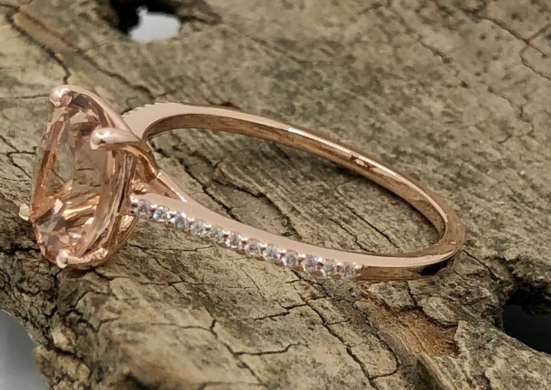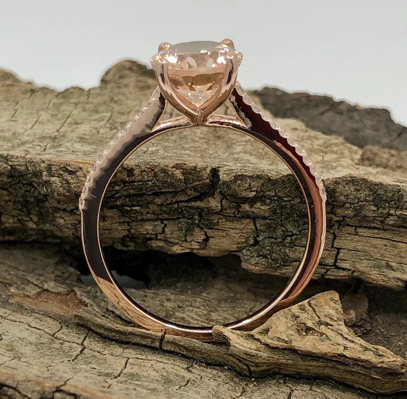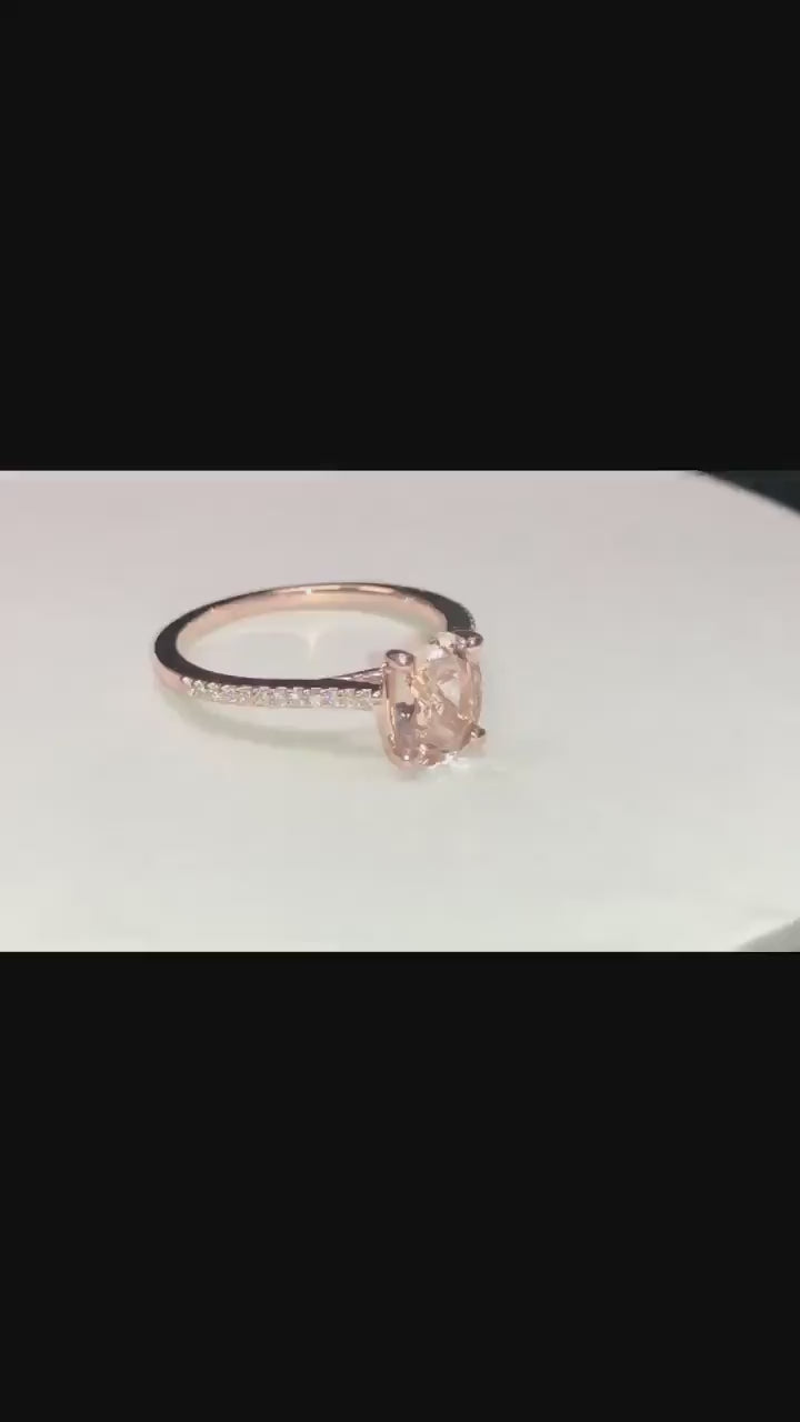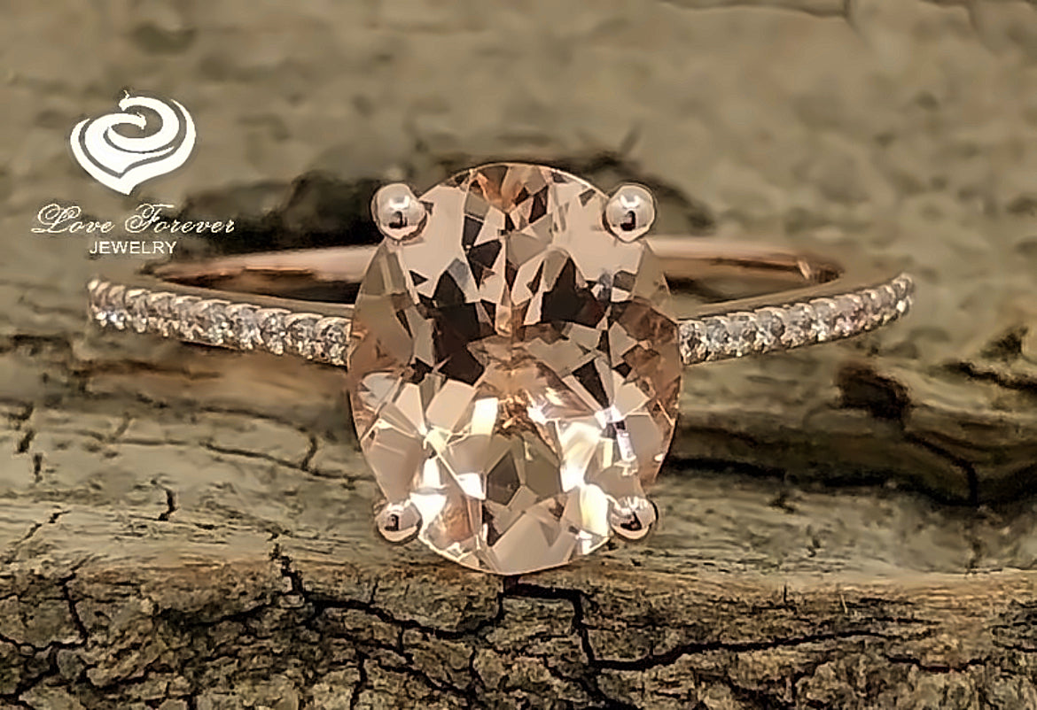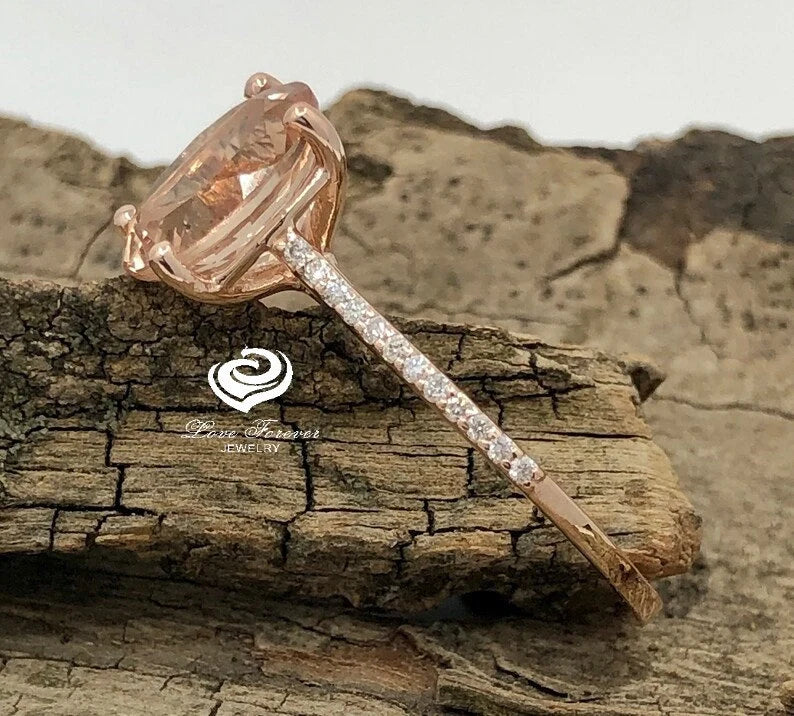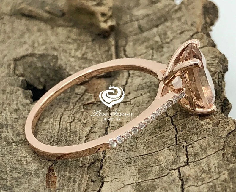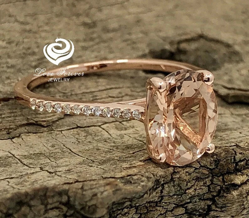 Engagement Ring 14k Rose Gold Diamond Ring 10x8mm/2.15 Carats Oval Cut Morganite Ring Diamond Wedding Ring